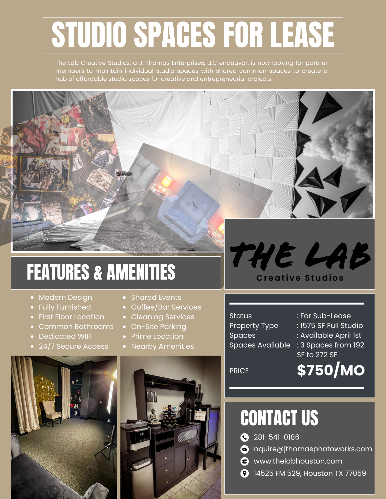 Call or text at (281) 541-0186 or message on socials. Looking for 6-12 month commitments starting April 1st and only have 2 opportunities left!